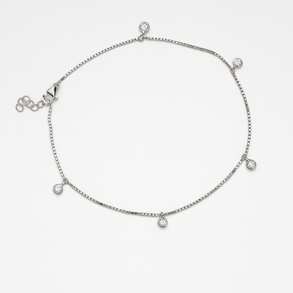 Minimal silver anklet with zircon charms and adjustable chain – chic and elegant