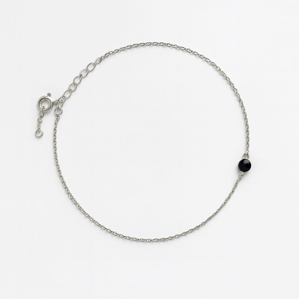 Silver anklet with single black bead