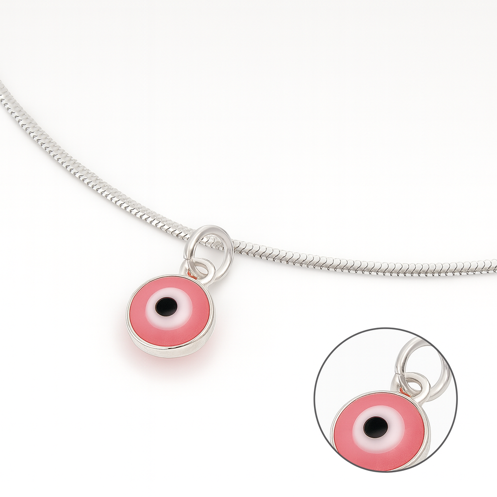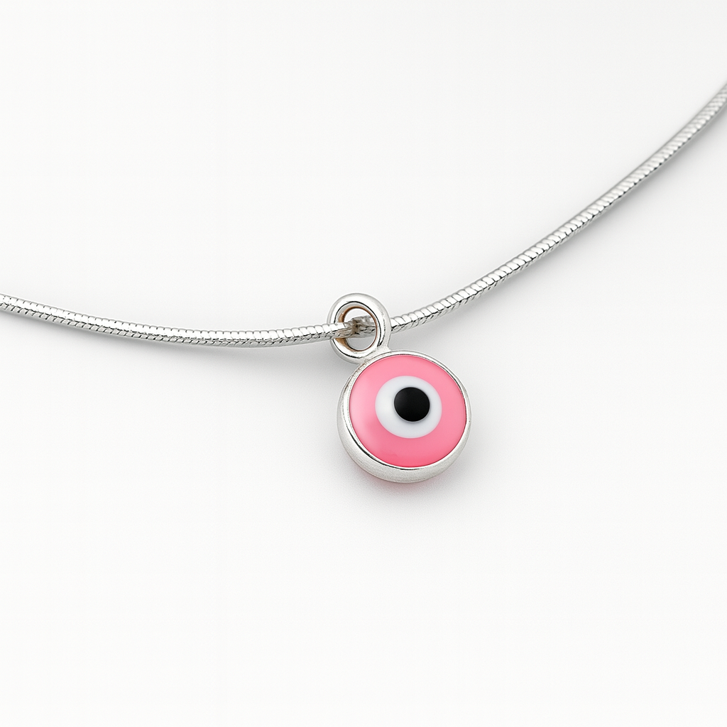 Silver pink evil eye anklet – minimal, stylish, and protective